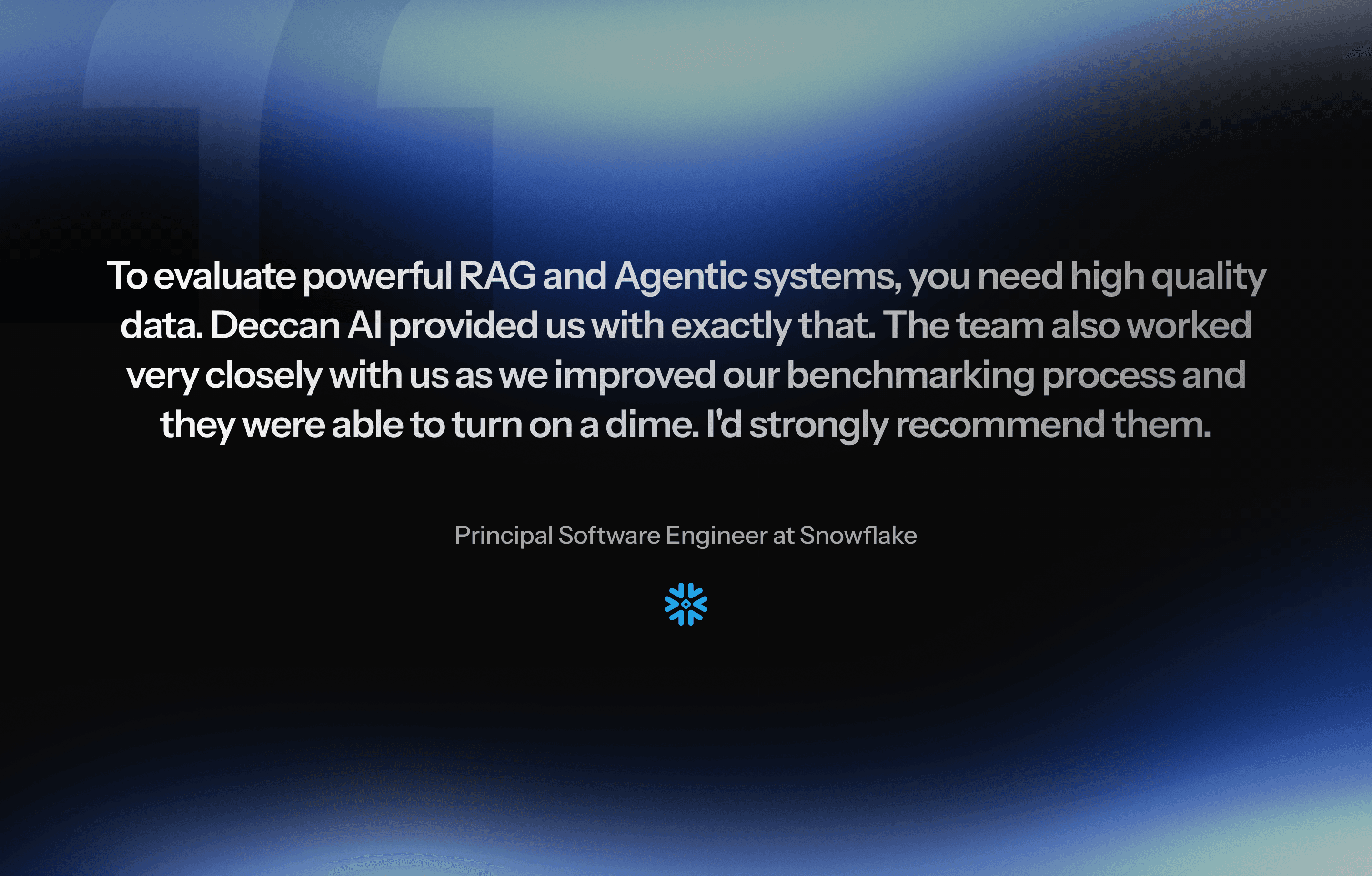 A real testimonial from a Snowflake Principal Software Engineer with name and title, not anonymous praise
